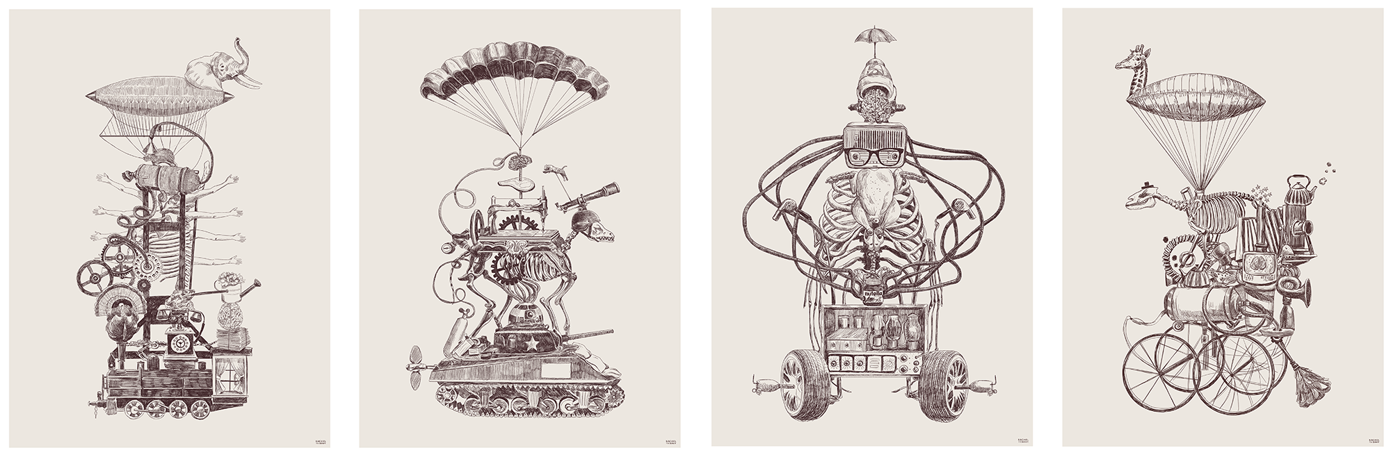 Macq01 was a different kind of challenge. A creative director had already defined the visual language and my job was to bring ideas to life within it. The style was more traditional, closer to what you'd expect from historical illustration, but the storytelling lived in the details and the quirkiness of the illustration mashup within the image. Working within constraints is its own skill, and I find it just as interesting as starting from a blank brief.