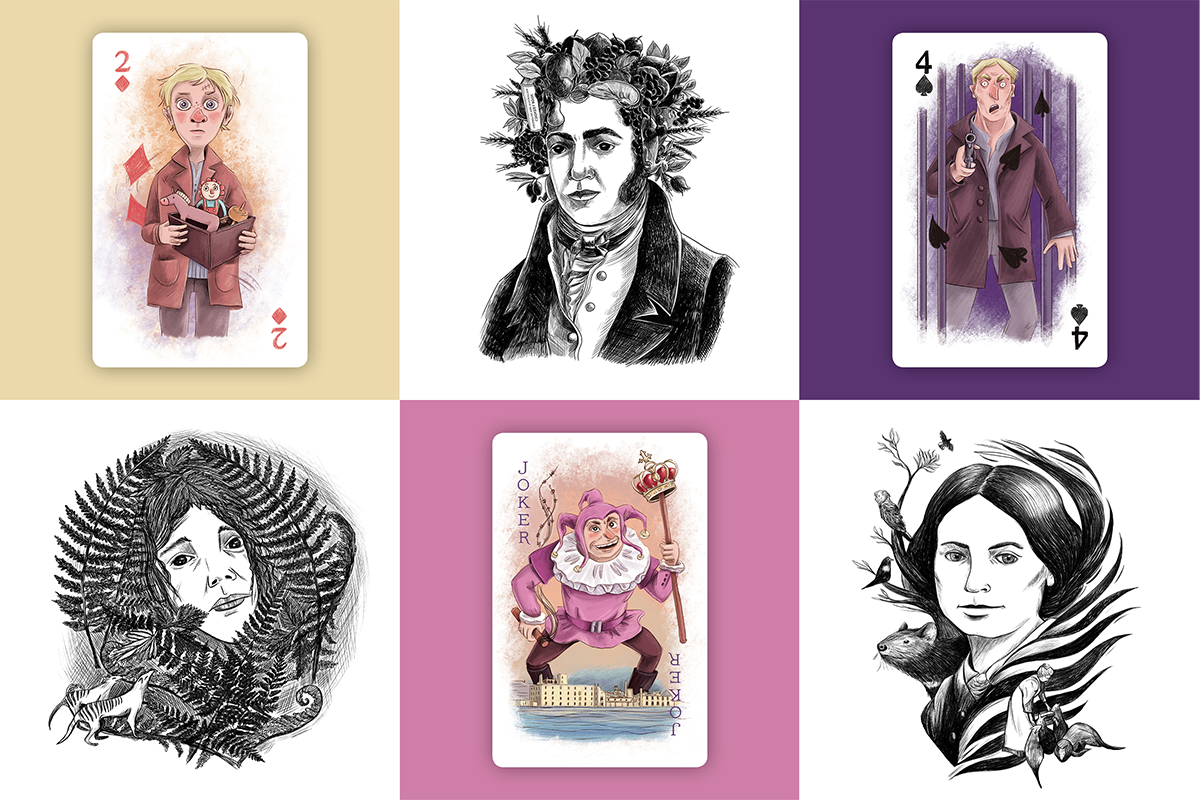 The Port Arthur deck of cards is a good example. Historical illustration commissions almost always pull toward the expected: etched lines, muted palettes, academic realism. That's the visual shorthand for "this is serious and old." But I wanted something that could hold a child's attention and an adult's without talking down to either. I had real artistic freedom on that project and I used it. The result was something I don't think had been seen in that context in Tasmania before.