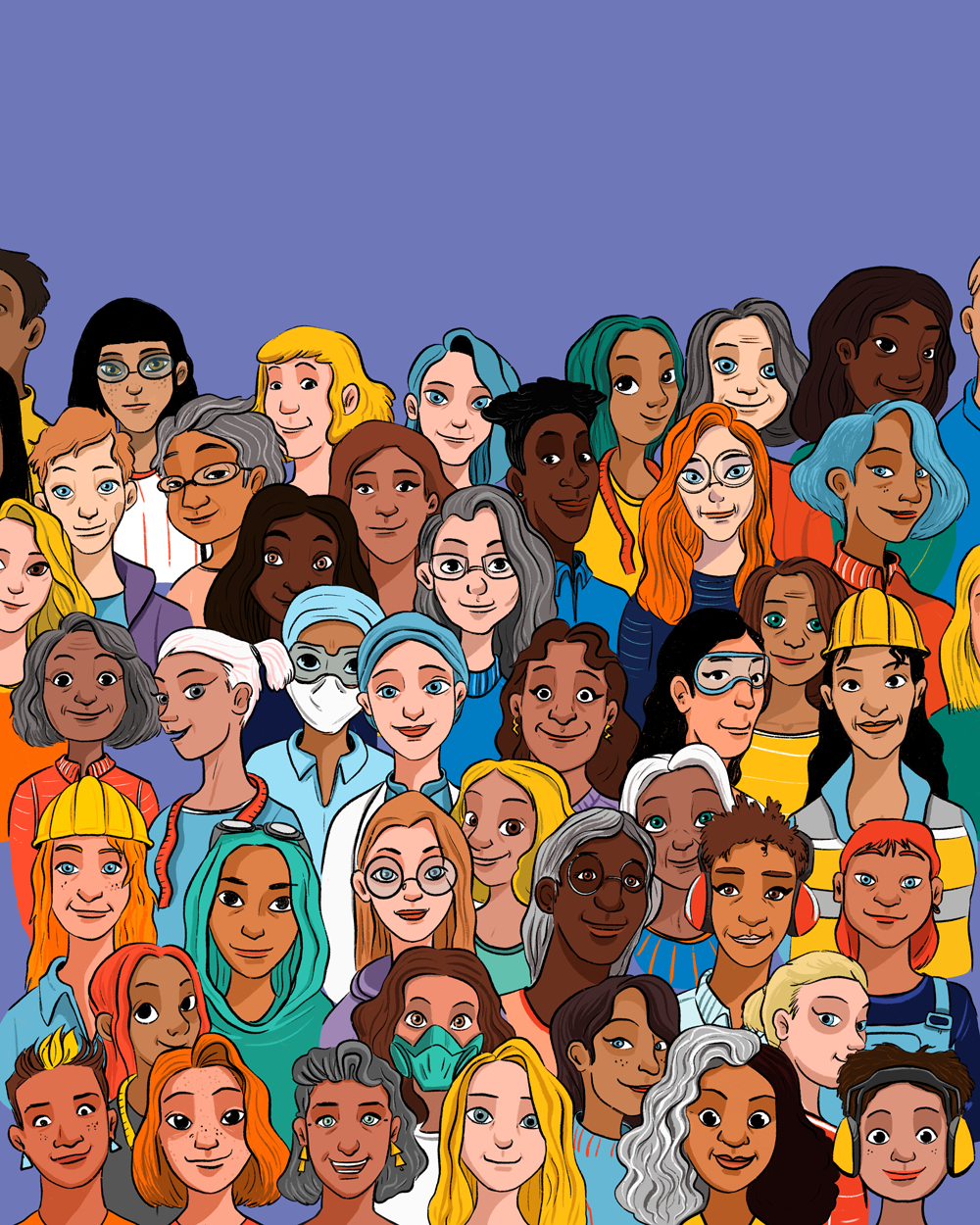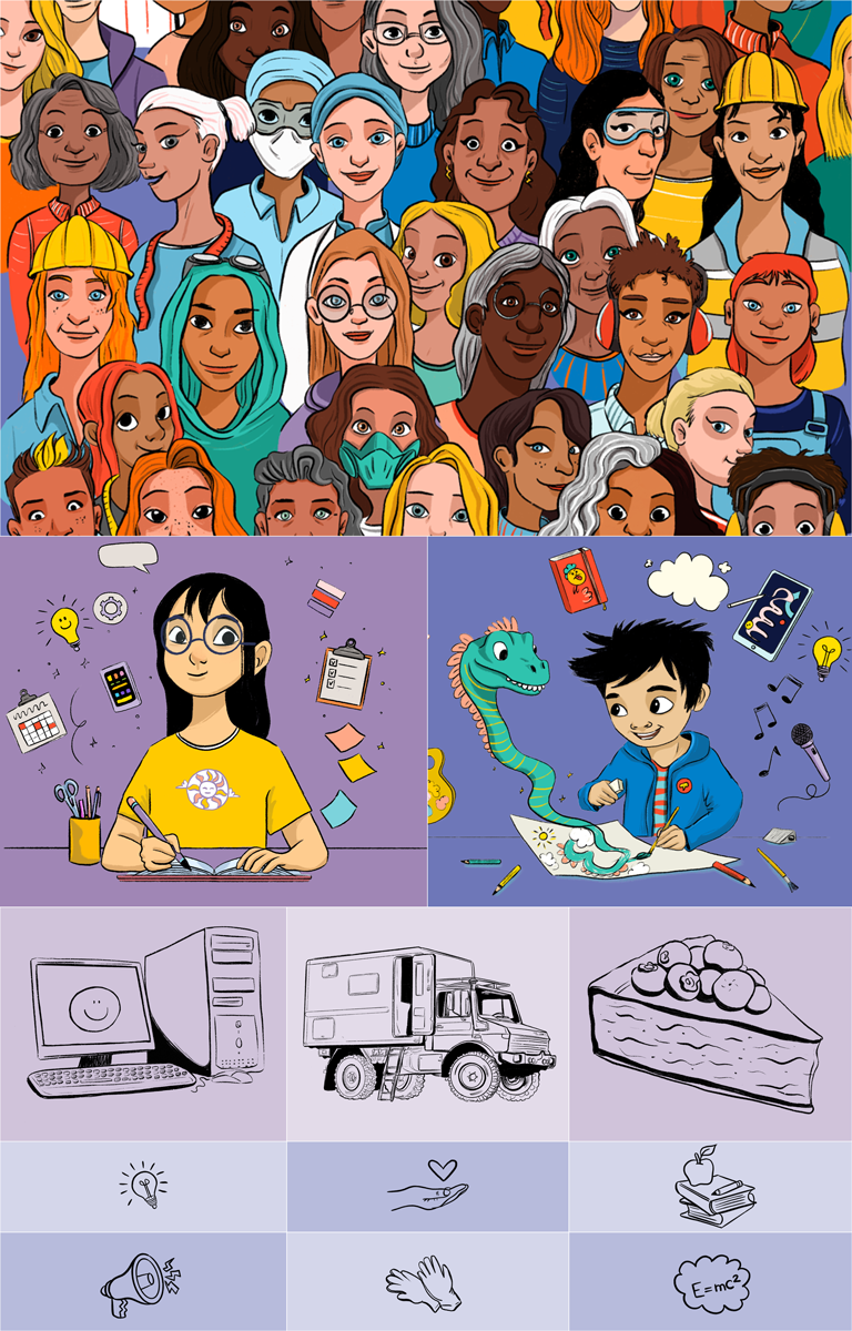 The illustration system needed to feel bold, friendly and accessible to young readers, while working alongside real photography of the featured women.